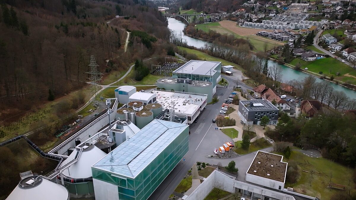Ara region bern ag from a bird’s perspective, where neustark built our first prototype project for CO₂ capture and on-site liquefaction.